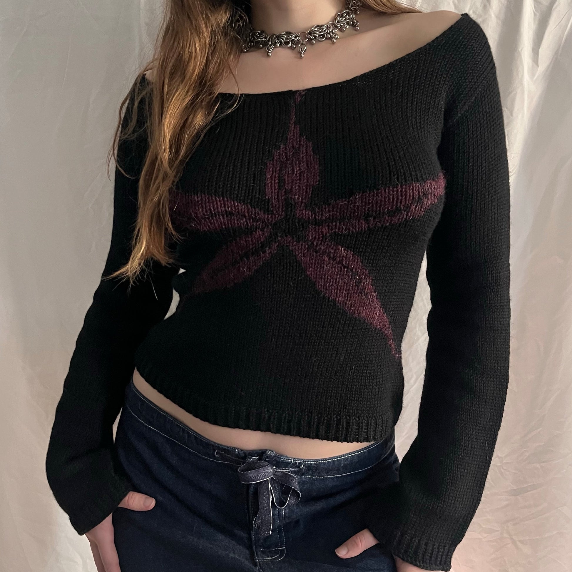 custom solid starflower sweater in dark grey and pink <3 size xs/s